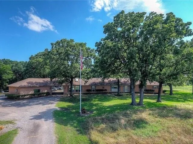 This ranch offer 2 HOMES on just over 17+ Acres & has a WOW drive up w/tree canopy around both homes. 1st home is a unique brick 4/3 offering over 3281 sf. & has a great open floor plan built for entertaining. One of a kind Atrium(Game Room) w/waterfall & stone flooring, stepping up to a huge bonus room, w/hidden room. Octagon shaped family room w/stone WBFP, dining room w/ bay window, kitchen w/island & bar seating-custom tractor bar stools, double sink & second working area. Rustic metal & cedar accent throughout home, mudroom w/1 full bath, washer/dryer & space for extra fridge. Wide hallway leads to 1 Master en Suite, 3 bedrooms, hall bath w/walk in shower & large tub. Gorgeous views from every room & lots of windows. Porte Cochere w/1 car garage, large craft room/bunk room. The 2nd home has 3/2 and offers 1656 sf. w/great open floor plan. Huge kitchen w/island, lots of workspace, cabinets & gorgeous copper backsplash. Master bedroom has recessed ceilings. Split bedrooms with some ADA features, hall bathroom & laundry room. The back porch offers wonderful sunset views & wildlife watching in this park like setting. Workshop has electricity, covered porches, full RV cover & hook ups. This ranch is fenced & cross fenced-livestock ready. 17+ acres of improved pastures & AG exempt for hay production.