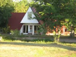 Double A Frame Style Chalet on 5 acres, 2 ponds, large barn with concrete floors, storage building, carport, craftsman style patio area. Builder was a cabinet maker, nearly entire house inside lined with wood, peg wooden stairs - amazing craftsmanship and brick work, all bedrooms A frame, full bath upstairs and downstairs with jetted tub, half bath for visitors - uniquely designed open kitchen and dining area with custom cabinets. Large storage.