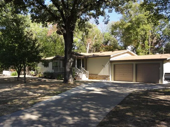 Immaculate custom Doublewide with brick underpinning on 1.5+-acres less than 1 mile to Cedar Creek Lake. 2 living areas, formal dining, breakfast nook, wood burning fireplace. Attached 2 car garage, covered front porch, sidewalks. Storage building, covered wood storage, covered parking area for lawnmower. Lots of trees.