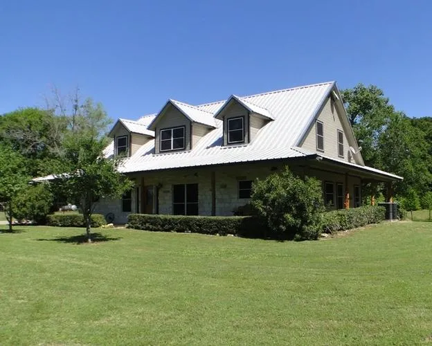 JUST REDUCED Situated in Tree Country Manor, enjoy peaceful country living in this 2-story white stone and rock home with wrap-around porch; entertaining area in back; and lush 2 acre lot with shade trees. Inside, soaring ceilings, custom lighting, stone fireplace, and easy flow from kitchen to breakfast and living areas. French doors in Master open to porch. 2nd bedroom (downstairs) could also be office - upstairs bedrooms w. game room overlooking living.