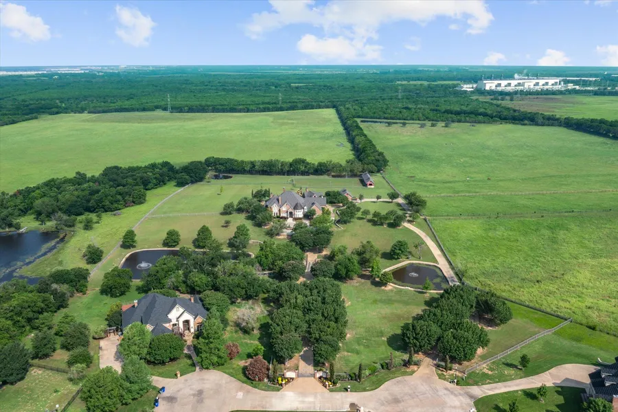 Escape to opulence within 22 miles of Dallasan entertainer's paradise. Inside, scraped hardwood floors, commercial kitchen, stainless appliances,& granite. Luxurious living room, wet bar, & custom wine cellar. Formal living and dining add an extra touch of sophistication. The primary bedroom & bath has large walk-in closet featuring a clothing carousel. Upstairs, a sprawling family room, fireplace, wet bar, w adjoining media room and game room. 2nd floor Patio overlooks pool and provides beautiful view of Dallas Skyline. Three additional bedrooms and a bonus room complete the upper level. Main home has 4 WBF, features custom fountains, a cascading waterfall, and a dazzling pool w spa, separate pool house with living room w WBF, bedroom & gym. For horse lovers a 5 stall barn and arena. In one of the fastest-growing counties in the USA and amidst the rapid growth of a Texas town, this esta...