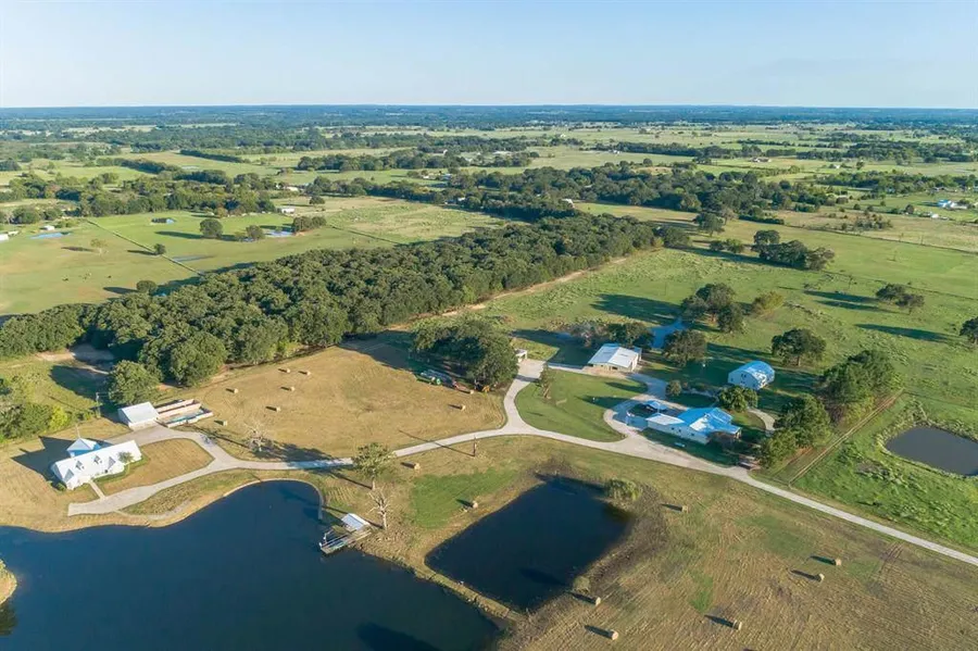 Incredible 101 Acre Ranch. Property features 2 nice homes, main home built 1999,3-3-4 has open concept, double ovens, many built-ins,large living room w WBFP & pool. The other built 1982 has 3-2.1-2 with large living room w WBFP, dining,and ideal for long term guests.There is an awesome party barn with large area for entertaining,kitchen, dining, and sleeping quarters. In addition a large workshop and equipment barn w 2 large sliding doors. Approx. .6 mile of Concrete drive to homes, lush Bermuda Pastures, some heavy timber with plenty of wildlife. This property has multiple ponds with 2 nice lakes stocked with bass, catfish, and Brim, includes covered fishing pier.