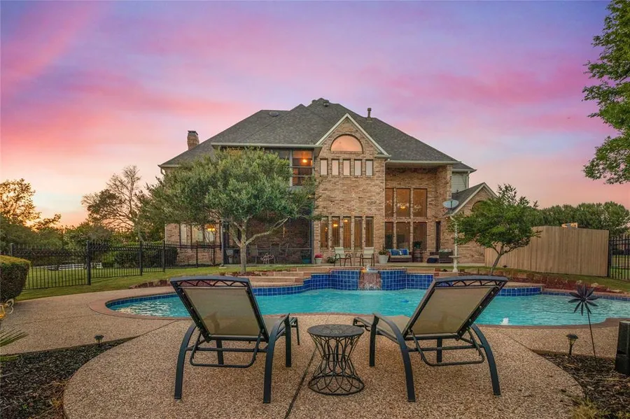 Serene luxury living within minutes of city amenities! This custom home is nestled on 3.96 acres in the sought-after neighborhood of Saddle Club. A perfect spot to entertain is the formal living room and connected dining room. A large office is perfect to work from home. Enjoy a glass of wine from the private screened in porch off the master bedroom. In the beautiful master suite, you will find dual vanities, separate shower & spacious closet. Chef's kitchen features custom cabinetry, oversized island, granite, walk in pantry & built-in breakfast table with storage. Media room with surround sound. Two upstairs bedrooms with a jack & jill bath and the other bedroom has a full bath right outside. Large laundry and separate mud room with access to the dog run and porch. Tranquil backyard overlooks pool, spa, and pond. This property offers a storage building that could be an apartment with full bath and loft. Rockwall ISD schools. Search address on YouTube for cinematic video.