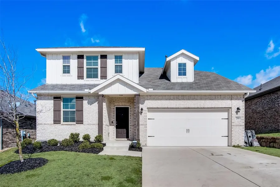 Enjoy the modern, sleek exterior design right in the heart of the community. Charming Family Home Steps from the School in Wildcat Ranch - Don't miss this spacious 4-bedroom with study home in Crandall, TX. The primary suite is conveniently located downstairs, with secondary bedrooms upstairs alongside another full bathroom. The home is a perfect setup for entertaining, offering a large kitchen island with extra seating, a gas fireplace, designated dining area and a half-bath downstairs. Additionally, there's an oversize game room upstairs. Enjoy the community amenities including a large pool, splash pad, playground, fitness center, and amenity center. Top it off with close proximity to Noble-Reed Elementary School and quick access to major roads heading to various dining and retail options. Remarkable interiors feature a light and bright open layout.