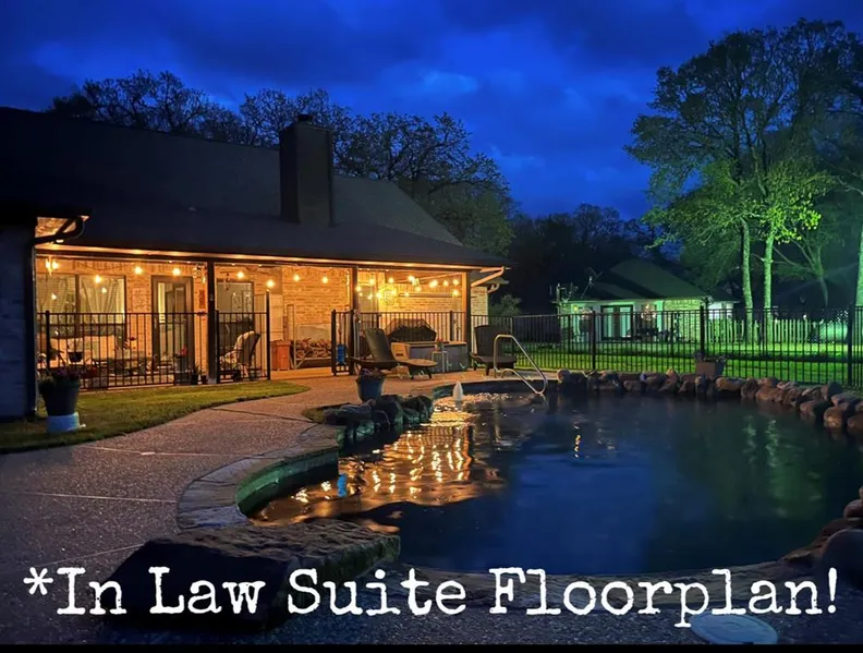 RARE FIND & just what you need! Lets goooo! Unbelievable private 2 bedroom 1 bath inlaw suite complete with 2nd primary bedroom, full bath with tub, separate shower and walk in closet, stunning living area with fireplace, kitchen, and second bedroom or study with full size WD connections. Main home floorplan contains 3 bedrooms, 2 baths, office, living, dining, kitchen, breakfast area, and large utility with full size WD. Lovely entry flows into formal dining or main living w brick woodburning fireplace. Split bedroom arrangement. 1st Primary Bedroom has ensuite bath with garden tub, sep shower, dual sinks, and walk in closet! Open main kitchen with breakfast area viewing backyard. Beautifully updated Jack n Jill bathroom for secondary bedrooms. Fiber optic internet. Three car garage. 2 acres of land w 2 stall pole barn. Saltwater pool with wrought iron fence. Fantastic covered patio for...
