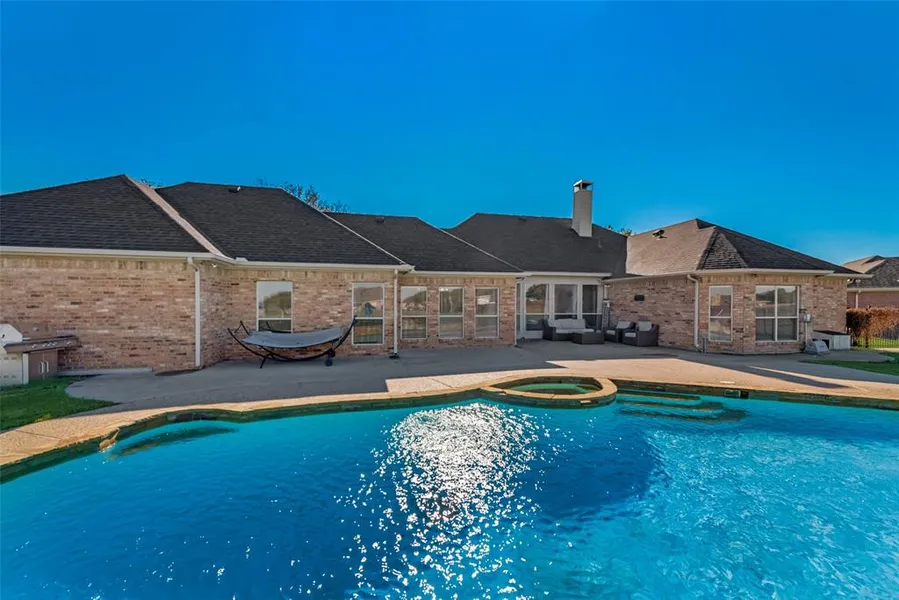 Reimagine this 4-bed, 3-bath house on a 1-acre lot into your dream home! Features include an open layout, stone fireplace, and a spacious kitchen with an island. Enjoy the backyard oasis with a sparkling pool. Updates: replaced roof 2022, fresh paint, updated HVAC, pool pump, new flooring. Includes a 14 x 60 RV pad with electricity. Needs finishing touches to make it your own. Dive into the refreshing private pool and create your dream oasis!