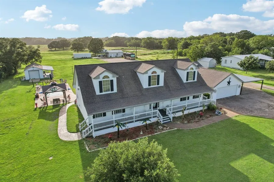 AMAZING PROPERTY WITH ENDLESS OPPORTUNITIES!! Wrought iron fence frames the front of this home and a Lovely Front porch welcomes you! Beautiful kitchen with corian countertops, farmhouse sink, breakfast bar, and under cabinet lighting! Stylish luxury vinyl tile throughout! Primary suite has attractive vanity with dual sinks and gorgeous shower with built in seat! Upstairs has nice loft area and 2 large bedrooms! One bedroom has super cute built in bunk beds! Outside has so much to offer! Awesome covered patio! Sparkling pool with pergola, backyard playset, 2 person wooden swing, oversized 2 car garage with double covered carports, bar pavilion area, 13x13 Air conditioned kitchen area with its own bathroom, 31 x 14 shop with electricity, 29 x 22 shop also with electricity and another air conditioned building for hobbies, fun or storage. Whether you own a business, have hobbies, need storage or just love to have fun and entertain; this house has you covered! Must see to truly appreciate!