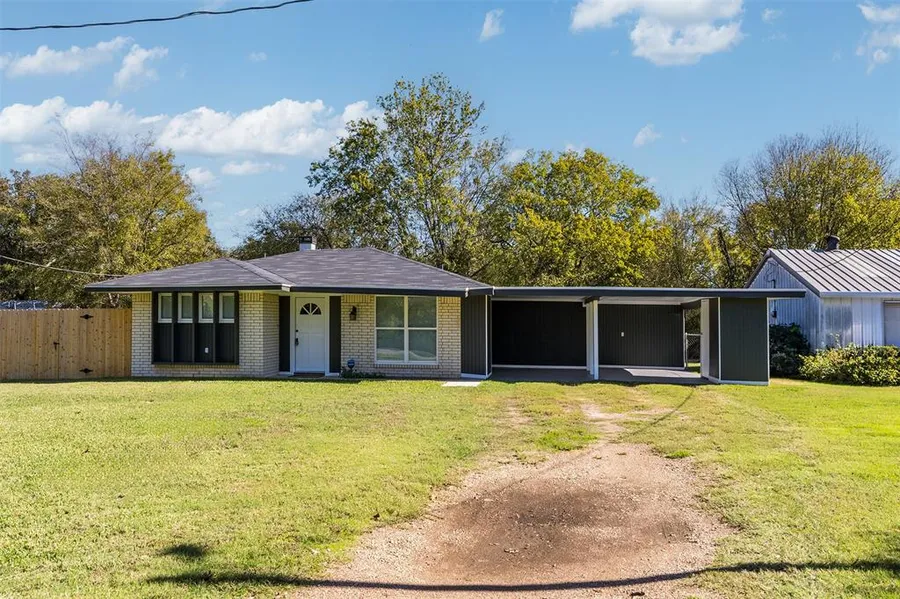 Beautiful country home in a peacefully private setting yet conveniently located to all your local needs. This home has been entirely renovated, with brand new windows, HVAC and a roof less than around 5 years old. Rural charm on just under one acre with endless possibilities. Two bay car port and front patio to enjoy spectacular Texas sunset over the Ranch land that faces this homeWalk into the welcoming entry way with all new tile and laminate floor throughout, two front facing bedrooms on either side. A hallway connects into the bathroom with a second bath door to the master room. An open concept kitchen with fresh quartz countertops, new stainless steel appliances and an island breakfast bar. The Inviting living dining room area features custom built-in cabinets and shelves centered around a cozy fireplace with large windows facing the specious fenced backyard. An atrium door connects to the bright and beautiful multi-use sunroom with two spacious closets for plenty of storage. Beyond the sunroom additional a bonus 3rd room perfect for a private office, hobby room, or home gym. This cozy country home is the perfect place to enjoy the serenity of a rural lifestyle while conveniently located 10 minutes from grocery stores, restaurants, stores, and schools.The bonus highlight of this property is the 30 by 30 steel building with two bay doors. Constructed with heavy gage steel frame and beans, built on a reinforced cement slab, sky lights, ventilation fans, insulated walls and a separate electric panel and meter, perfect for a home business. House sits on approximately half an acre and steel building is on about a quarter acre.