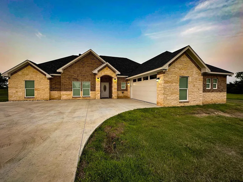 Experience the charm of this 2022 custom-built Austin stone, brick home nestled on a remarkable 18.4-acre estate. Step inside to discover a open concept floor plan boasting three spacious bedrooms, two and a half bathrooms, a spacious kitchen, dining area, and a cozy breakfast-coffee seating area. The allure continues with custom-built wood-stained cabinets and granite countertops that adorn every corner of the house. Unwind in the expansive primary bedroom, complete with an attached bathroom featuring a garden tub and generous walk-in his and her closet. The kitchen offers ample bar seating, a granite island and a convenient pantry to cater to your culinary needs. An older pole barn and small pond are in place as well. Ensuring both privacy and peace of mind, the property is fenced on 3 sides and secured by a reliable security gate. This retreat is approximately 45 minutes from the city of Dallas, and just 30 minutes from Rockwall and Canton. Going for multiple offers, come view today!