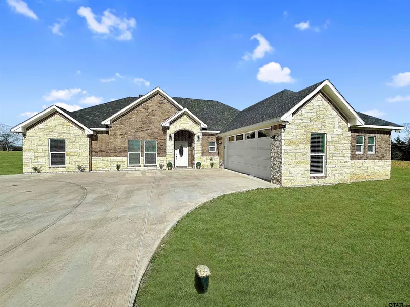 Explore the allure of COUNTRYSIDE living with this 2022-built GEM on 18 pasture acres. The Brick and Stone exterior enhances the 3-bed, 2.5-bath ESTATE, featuring GRANITE countertops, VAULTED ceilings, and a kitchen ISLAND with bar seating. The master En-suite bathroom boasts a double sink, garden tub, separate tile shower, and a spacious walk-in closet. This AG-EXEMPT property welcomes animals and offers a pond, barn with equipment coverage, TWO-VEHICLE garage, and a covered back porch. Uncover the perfect blend of rural charm and contemporary comforts in EAST TEXAS, where every detail provides coziness and comfort, and each corner invites you to call this house a HOME. Just 35 miles from Dallas!