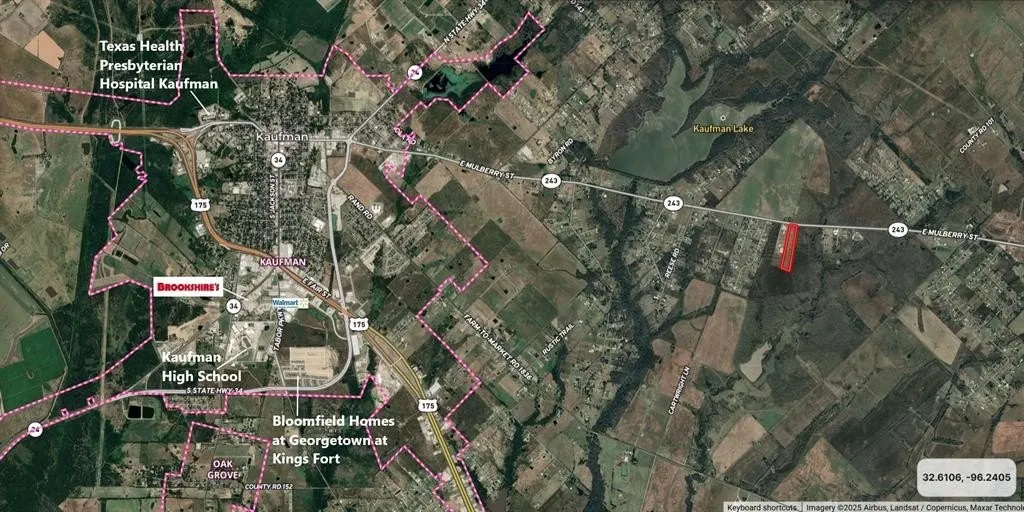 Unique investment or development opportunity in the county allowing flexibility of use, yet nearby the population base, businesses, infrastructure, retail, restaurants and communities of the City of Kaufman. The City of Kaufman's population has increased by 40.79% since the most recent census in 2020. Great transportation network with quick access to U. S. Highway 175 and State Highway 34. Approximately 280 feet of frontage on State Highway 243. Level tract of land with no flood plain. Water CCN: College Mound W. S. C. Marketing brochure available upon request.