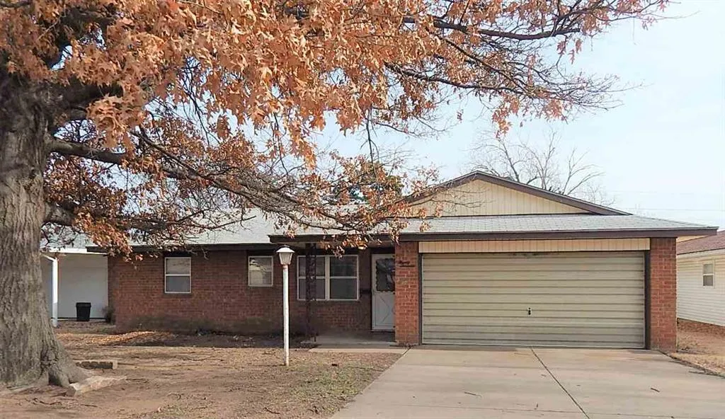 brick/vinyl siding home with vinyl soffits, 3 bedroom, 1 1/2 baths, bonus room off the kitchen, covered patio, fenced yard, central heat/air, and 2-car