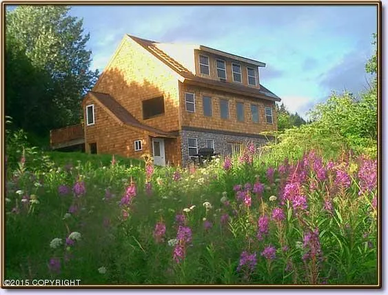 Three bedrooms, three baths, a gorgeous gourmet chef's kitchen plus an open and inviting living area with fireplace featuring a custom-carved mantel. Timber-frame construction, vaulted ceiling with exposed beams, and beautiful wood floors add warmth and beauty to this very special home. Large windows allow you to enjoy the unobstructed view of Kachemak Bay and the glaciers and mountains. Great multi-use potential, can be operated as a B&B, lodge, executive retreat, or used as a perfect family home.