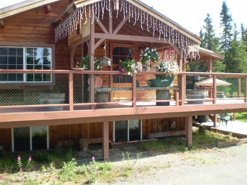 Kenai Peninsula Income Potential Horse Property with no Covenants, 3 bedroom, 3 bath cedar log home with 2 tiny home cabin rentals on a 2.16 acre corner lot in Kenai Alaska.