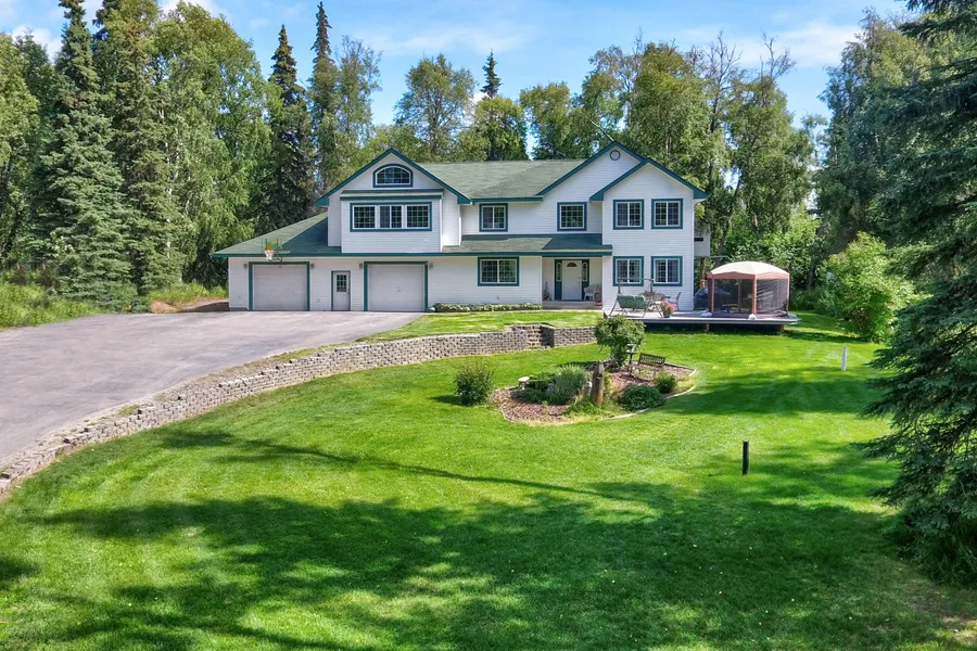 AMAZING FAMILY NEIGHBORHOOD! 1604 SF 4 car garage+workshop area! 2814 sf. 5 *home,4 bedroom,3 baths w/family room & HUGE great room upstairs! Vaulted ceilings, granite counters in kitchen, in floor heat +in garage. Paved driveway, 900 sf Trex deck, nice landscaping, water feature, fire pit, horse shoe pit & tree house. Desired area w/high end homes & only 3 miles to Fred Meyer. $7K FLOORING ALLOW.'