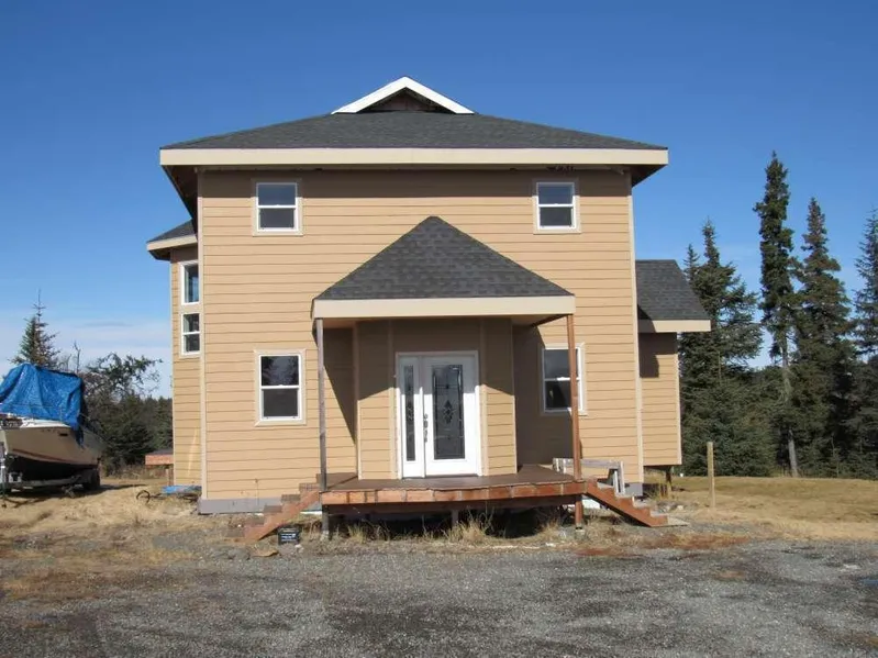 The main house features four bedrooms, two and a half baths, beautiful Tiger Bamboo flooring and wood-stove in living area, and a roomy, stylish kitchen. The detached two-car garage has an additional carport for your boat or 4-wheelers, and a one bedroom, one bath upstairs mother-in-law apartment for extra income or visiting family. The huge yard is accented by a fire pit area which is sheltered from the wind and makes an inviting spot for friends and family to gather. Located just minutes from world-class fishing in Cook Inlet and the Anchor River, and right in the middle of a fantastic area for hiking, hunting, and 4-wheeling. The apartment is move-in ready and could be your home while finishing the main house.