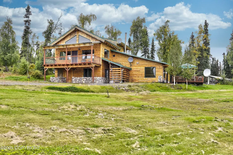 Privacy & Seclusion on 8.61 Acres! Beautiful mountain views & No one can build out your front door. Alaskan Paradise! Home features 3 bedrooms & 3.5 bathrooms with over 3,000 SF. Once was a duplex style property, it features two kitchens, two living rooms, and two wash/dryer units (upstairs & Downstairs). Log- sided home with many wood carved features inside & several updates over the years.'