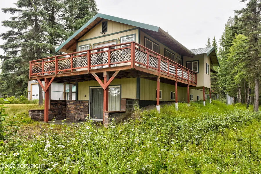 Here is your chance to own a home on Crooked Creek. This 2352SF home on 4.91 acres overlooks this salmon stream. Lots of windows , woodsy views and a wrap around deck. Custom hickory cabinets, pantry, new stove and dishwasher. Shop is 40' deep and has a 12' high garage door. Apartment in shop could be set up for vacation rental or guests. Greenhouse and huge sunny deck. Home warranty included