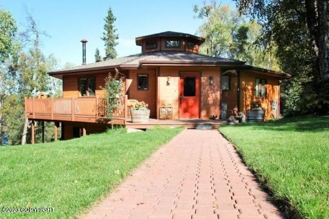 PEACEFUL LAKEFRONT LIVING! 3128 SF spacious & unique Alaskan home at the end of a road for privacy on 7+ acres, which extends into non-motorized Hope Lake. 3 bed, 2.5 Baths & a huge family room. Detached & heated, 3 car garage of 1300 Sq ft has a man cave/shop area at the back w/ a view. Tons of parking, greenhouse, garden area, dock & paddle boat. Escape city life just 7 miles from Soldotna.
