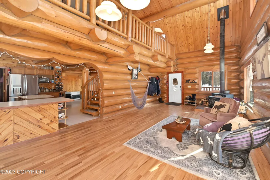 Stunning craftsmanship as you enter this gorgeous log home! With oversized logs and an open-concept kitchen/living area, you'll have plenty of space to entertain guests. NEW Stainless-steel fridge & dishwasher to match the stove. Located on a private 4.54-acre parcel, a perfect oasis for anyone seeking tranquility. The basement can be a workout area or mini movie theater, plus extra storage! Sellers sadly have to leave state after only owning the home a short while. Wood floors are newly sanded & stained. There are NO CCR's on this property. The huge greenhouse and the raised garden beds that are fenced in are perfect for anyone wanting to garden. Contact your preferred agent to schedule a showing today. Washer and Dryer will stay only with a FULL PRICE offer. Large freezer in the garage also for sale.