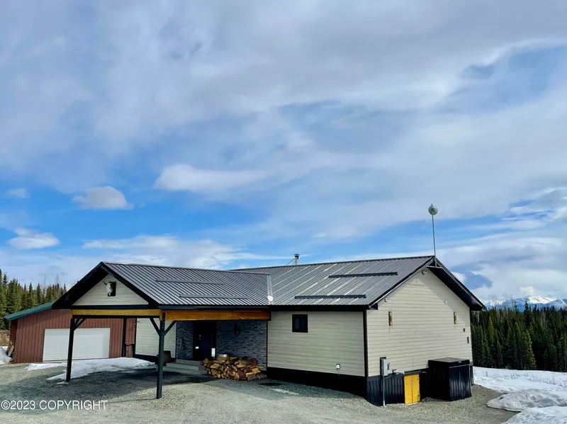 LIVE IN LUXURY! This CUSTOM home checks all the boxes: Privacy, 6.19 acres, Shop, Guest Cabin & VIEW! Walk-in to an open Kitchen/ Living area boasting vaulted ceilings with wood faux beams & a gas fireplace that blows heat into 3 areas of the home. The gourmet kitchen has it all including a butler's pantry. Next you'll find the private primary suite that feels spa like. All with a gorgeous VIEW! Home is set up to be ADA friendly. Main heat source is the wood fireplace but does have a secondary heat source ran off of propane for the in-floor heat. All appliances are staying with the home including the refrigerators, 1 wine/beverage cooler, freezer, built-in espresso maker, Wolfe towel warmer in primary bathroom & the washer/dryer. Guest Cabin: 320 sf studio has running water with a shower, sink & stacked W/D. Outhouse is used for the toilet, but buyer could easily add inside the cabin. Electric baseboard heat. Built in 2006. On pilings and has metal roof. Great View from the cabin as well. Garage/Shop: 2000 sf in total. Finished room inside of shop is approximately 16' x 30'. This room comes with built in countertops, luxury vinyl plank floor, electric baseboard heat, sheetrock, electrical, lights & ceiling fan. The rest of the shop is unfinished including the gravel floor. Comes with a garage door opener.