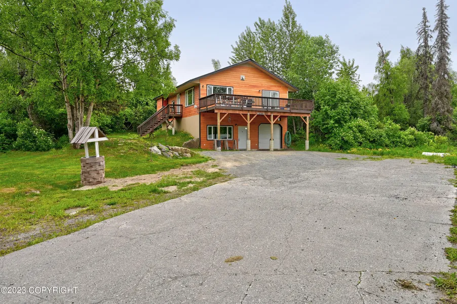 HILSIDE REMODEL WITH HUGE DECK! 2002 home w/total remodel in 2019 +all new kitchen in 2022 w/NEW cabinets, nice appliances,kitchen island & granite counters! 2032 sf w/3 bed, 2 bath & 400 sf extra deep garage on 1 acre. Vaulted ceiling, open living design,gas fireplace & slider doors to deck. New tile floor in bath +jetted tub. Deck will be repainted prior to close. Shed & greenhouse do not stay.