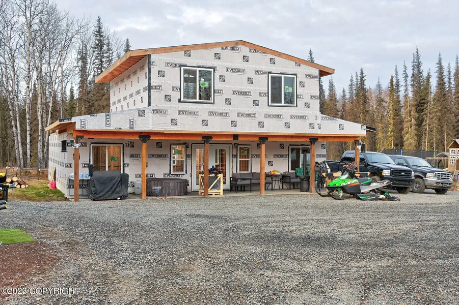 FINISH THIS BARNDOMIMIUM! 2.14 private/gated acres. Live off-grid w/solar & generator power! 2022 sf post framed home for 5 beds, 2 baths & family rm. Needs finished, as-is. Bath House w/on-demand hot water,washer/dryer,freezer & large shower. Insulated dog house/bldg w/covered kennels. Solar power fence Corral,40 ft Conex,all year greenhouse,3 Shelter Logix,playground,garden,root cellar,goat pen