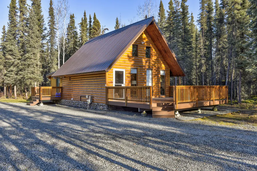 This beautiful chalet style cabin with log siding is just steps from fishing world famous Kenai River. There is a complete second cabin over the heated 2-car garage. The Gazebo has its own slab, power and fans, a huge fire pit sits across the lawn, plenty of room for RVs and boats. The perfect Alaskan family getaway, or an awesome B and B property! Furnishings and furniture are available too!