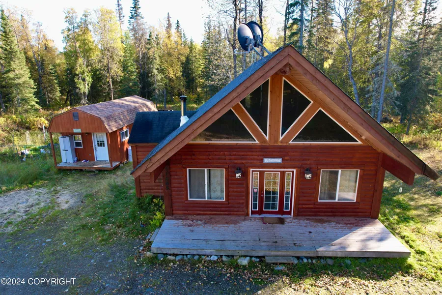 Alaskan log cabin on over 3 acres comes with a shop and guest cabin. Very efficient new Hearthstone Heritage soapstone wood stove with catalyst installed in 2023. Circle driveway and lots of room to park an RV and other toys. Shop is currently set up for livestock and poultry. Lots of land for your chickens, horses and other animals.