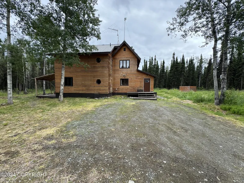 Nestled on 8.55 acres in the serene Alaskan wilderness, this off-grid log home offers rustic charm with modern sustainability. Featuring 2 bedrooms, 1.5 bathrooms & a spacious shop. It's powered by solar energy & a reliable 9000KW generator, ensuring comfort year-round. Surrounded by pristine nature, with Browns Lake & Kenai River access just up the road. New leachfield for septic installed 10/24 Midnight Sun Solar Panel system in 6 panels, 400 watts per panel, 8 200-amp Batteries and a 9000 KW oil generator that automatically kicks on if batteries and solar are running lot. The system is all synced together so you never have to worry about starting anything. Propane is for Dryer, Range & Small heater in bathroom. Oil runs the 2 Toyo monitor heaters & Generator. Shop has sliding doors, no heat, electricity or insulation. The shed houses the solar batteries & generator. This is the perfec...