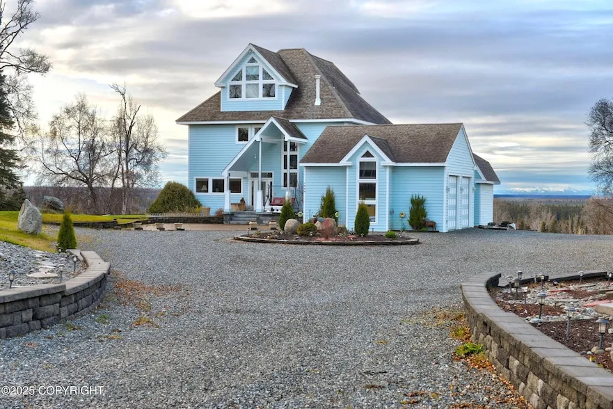 Custom home w/beautiful panoramic views of the Alaska Range and Kenai River. This home has over 4500 sq. ft including seperate living space w/walkout downstairs. Beautiful kitchen, w/stainless appliances & granite countertops. Beautiful 2 story master suite with loft office area. Soaring windows throughout. Large deck with southern views on 1.4acres of landscaped property. Pride of ownership shows