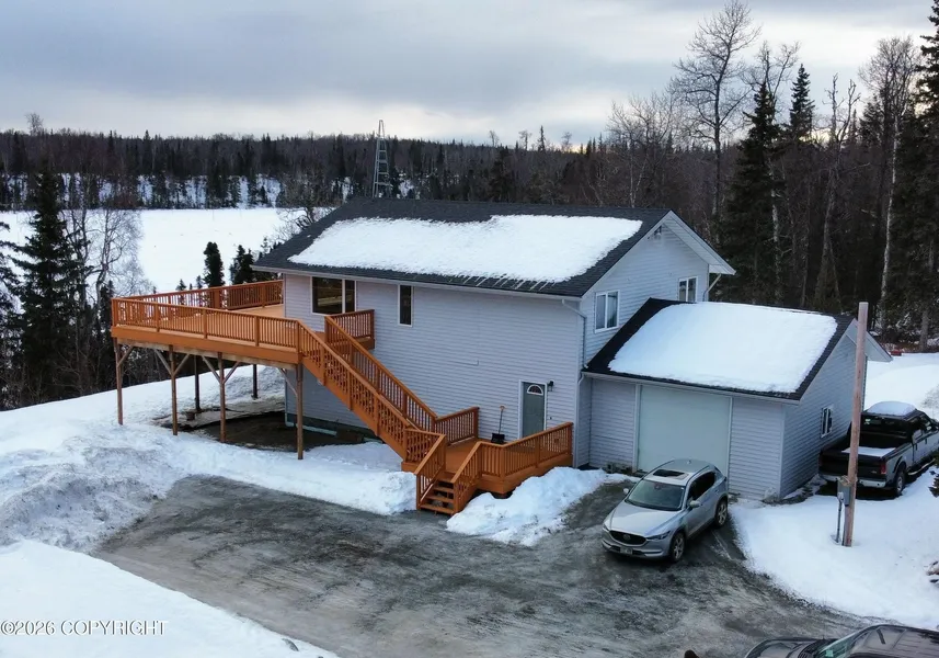 Tucked away in a peaceful private setting, this spacious 4-bedroom, 2.5 bath home offers the perfect blend of comfort, space, and Alaska beauty. Situated on a rare 5.24 acres (including an additional lot), this property provides room to roam, expand, or simply enjoy the privacy. The true showstopper is the massive deck overlooking a wildlife corridor with views of Buds Lake, the ideal spot to relax and take in the scenery. Enjoy regular visits from cranes, eagles, and moose, all from the comfort of your own backyard. Additional highlights include plenty of parking, a brand-new roof (2025), and an established berry patch ready for summer picking. Whether you're looking for a full-time residence or a peaceful retreat, this property offers a rare opportunity to own a slice of Alaska paradise.