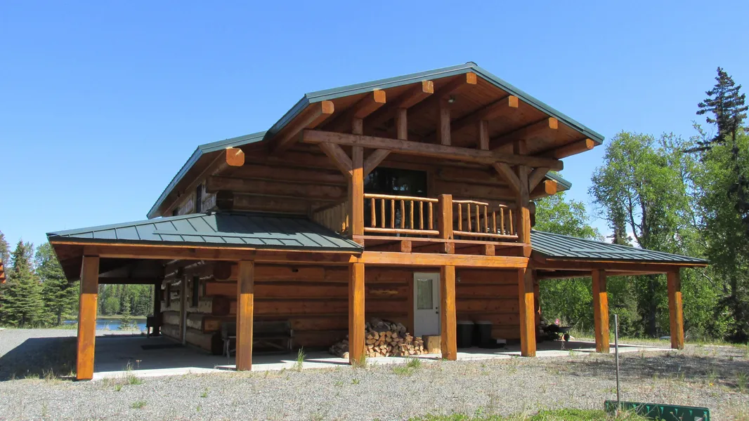 The beautifully finished, hand-crafted 2,312 sq. ft. main house features an open living area with an impressive 2-story stone fireplace, 3 bedrooms, 2 baths, radiant in-floor heat, gabled metal roof, and 1,960 sq. ft. wrap-around covered porch. The second-story covered deck overlooks the private lake, making it the perfect spot for enjoying your morning log 2-car garage also has an attached carport so there is plenty of room for storing vehicles, ATVs, snowmachines, and your boat. Also on the property is a 640 sq. ft. cottage and another recently built (2008) 448 sq. ft. cabin for visiting relatives, friends, or to use as rentals. The huge parcel of land provides the feeling of your own private wilderness but with none of the "roughing it" and with easy access to the major road system. A truly Alaskan estate for those who love to enjoy the outdoors but also want all the luxuries of a b...