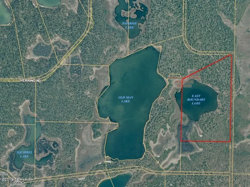 FORTY-TWO (42) lush wooded acres with a 12 acre lake suitable for landing a pontoon plane. Just 8 miles from Kenai Airport, located within KNWR is fairly flat ground and suitable for septic as soil testing has been done. Just right for a cabin with great views of the lake.