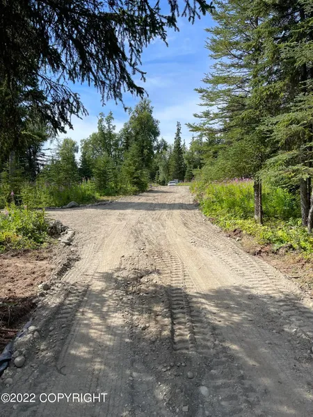 Over the river and through the woods. The driveway is in, and a pad for a cabin or shed. Homesite has been cleared as well. Very nice 1.56 acre corner lot in Ninilchik River Estates! Huge trees, and lots of good buildable homesites. Power adjacent along Forest Park Ave.'