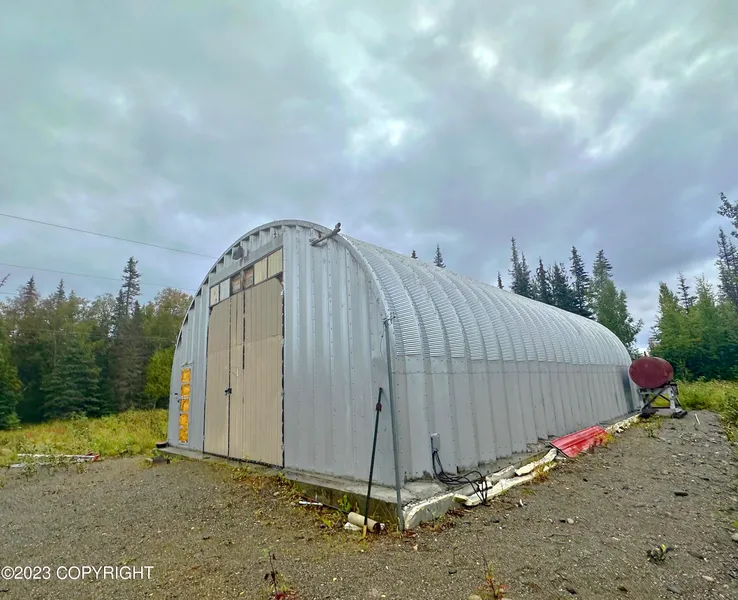 Metal Quonset on 5 acres! Over 1500 sq ft of shop space plus a 40X8 connex for additional storage. Property has electrical, well and septic. Quonset has spray foam insulation and small oil heater with in-floor radiant tubes ran for adding a future heat source. Property is being sold AS-IS including personal property. Cash or possible recreational loan. Previous inspection available upon request.