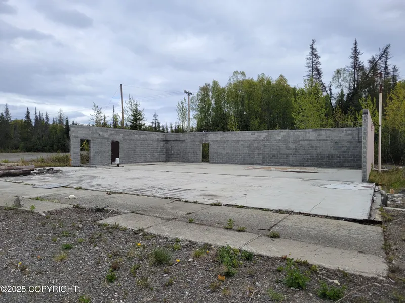 Commercial Property - Driveway off the Kenai Spur Hwy and access off Coringa Ave. In the heart of oil and gas industry. Well, Power, Nat gas and Concrete slab with 3 block walls and additional (17.5' wide) footers that maybe usable to build living quarters on or storage units. Lots of gravel parking and highway exposure. Room in the back of the lot for more development. New 1hp well pump.