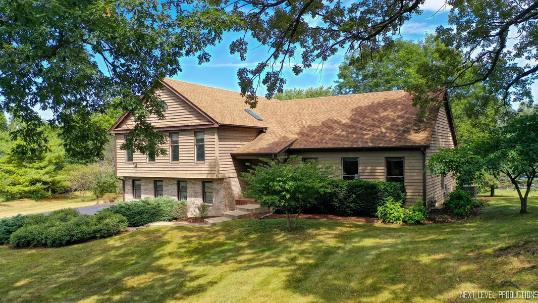 GORGEOUS HOME ON A 1 ACRE PLUS LOT! Covered front entry welcomes you to this spacious home. Living room, dining room and kitchen are on the main level. Quality cabinetry wraps the kitchen, plus a center island. The breakfast room...walks out to one of the decks, perfect for morning coffee. 4 bedrooms up! The Master Suite has a private bath, walk-in closet and IT'S OWN BALCONY! Two other bedrooms are spacious and the fourth is so versatile with double doors & a walk-in closet...it could be the perfect home office! The family room is centered by a fireplace and YES, glass doors out to the lower level deck. Step in from the garage to a large back foyer/mudroom. Laundry room on that level too. THERE'S MORE...a finished basement with serving bar and excellent storage in the mechanical room. Gorgeous landscaping, FLAT YARD, HUGE SHED and a BIG BONUS... green space behind the property, that adds to the beauty and privacy of this land!!! All lots are an acre or more in this subdivision & convenient too downtown Yorkville or Oswego...shopping, dining nearby!