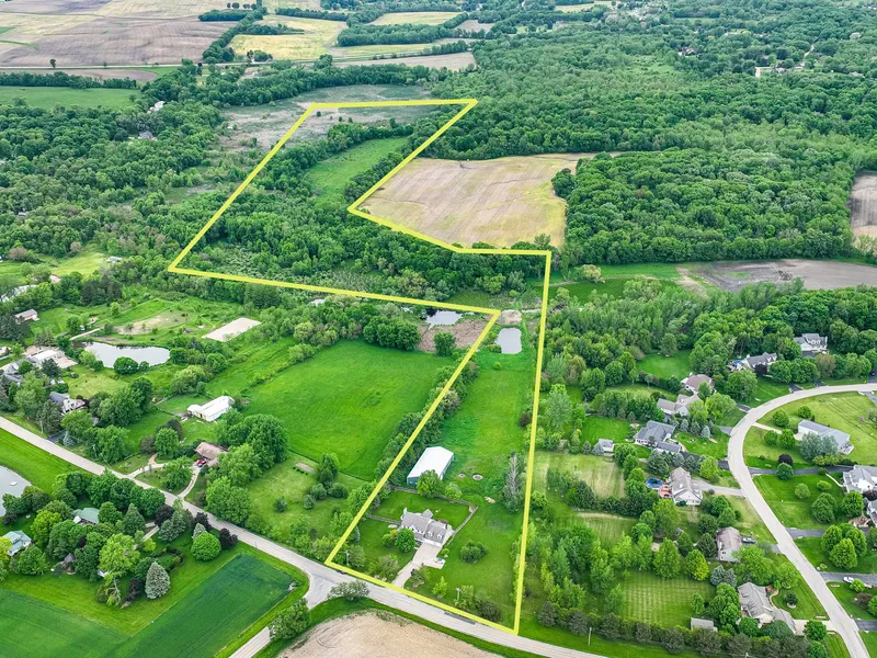 28 ACRES; HOUSE; OUTBUILDING, POND, WETLANDS, TIMBER AND TILLABLE LAND. HUNTERS, FARMERS, HORSE LOVERS, RECREATORS ...INVESTORS - This land has something to offer everyone and the property has OVER $180,000 of IMPROVEMENTS!. They include: 2-story screened in back decks, Roof, Patio, Lower Deck, Water Purifier, 2024 = New Carpet, 2021 = Refrigerator, Dishwasher, Stove, Privacy Fence; 2018 = Washer, Dryer, Wood Barn Door, Ejector Sump Pump, Brick Retaining Wall under Deck; 2017 = HVAC; 2016 = Roof, Epoxy Basement Floor, Hot Water Heater, Landscaping and Hardscape (Large stones in back and brick paver walkway in front); 2015 = Laundry Room Remodel with epoxy floor and walls; 2012 = Brick Paver Patio around pool; 2009 = Septic. This 2-STORY HOME has a BRICK front and features a total of 4046 Finished Sq Ft and Fresh Neutral Paint throughout. 2844 Sq Ft Above Grade includes Open Concept between the kitchen, eating area and family room. Kitchen features a LARGE ISLAND, STAINLESS STEEL APPLIANCES and GRANITE COUNTERS. The 2-Story Family Room hosts a soaring brick fireplace and an abundance of windows for natural light. Hardwood and tiled floors on the 1st Floor. The 2nd Floor includes 3 Bedrooms + Loft that is open to below (it could easily be enclosed for a 4th Bedroom) and 2.5 baths with new carpet. Master Bedroom features a tray ceiling and WIC, but look beyond the 2nd door to the unfinished space. Use this space to expand the closet, add an office, gym, nursery etc. The FULL FINISHED WALK-OUT BASEMENT is a perfect in-law, related living, guest quarters or entertaining space as it has a large recreational room, 2nd private room / bedroom with closet, full bathroom and kitchenette. (1202 Sq Ft). AMAZING OUTDOOR ENTERTAINING AREA features a 2-story, screened in, Romeo & Juliette deck. Beyond that is a 2-tier exterior deck AND Brick Paver Patio with outdoor fire pit next to the above-ground pool...all is enclosed by the 5' PRIVACY FENCE. This home is on one of the highest points of Kendall County and gives you a beautiful view out back. 3-CAR ATTACHED GARAGE is extra deep. HORSE BARN is a 50x100 POLE BUILDING with 3 stalls, electric and water. Use remaining space as a small INDOOR ARENA, build additional stalls or storage. HUNTERS...there is a pond, wetland, timber and tillable ground...for all hunting seasons. INVESTORS...Lease the property in its entirety or separately...House...Barn...Hunting Land. 5 Acres has split zoning of Zoned R-1 and A-1. The 23 acres is zoned A-1. Easy 5 miles to downtown Yorkville, 30 Min to I-88 or I-80.