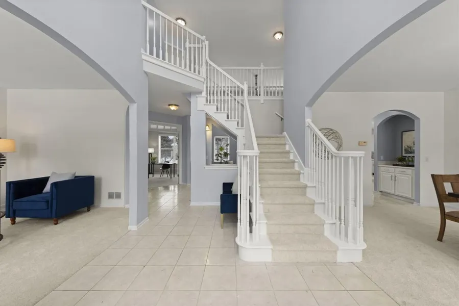 Welcome to your dream home! This gorgeous brick property offers 4 spacious bedrooms and 3.5 luxurious baths, perfectly designed for comfort and style. The open floor plan features an inviting 2-story family room with a cozy fireplace, seamlessly flowing into the chef's kitchen complete with upgraded cabinetry, a large island, walk-in pantry, and a charming breakfast nook. The first floor boasts a private den, ideal for a home office, and a convenient laundry room. A stunning split staircase leads to the luxurious master suite, where you'll find a spa-like bath with dual vanities, a whirlpool tub, a separate shower, and a generously sized walk-in closet. Need more space? The full, unfinished basement is a blank canvas, complete with a bathroom rough-in, ready for your customization. Don't miss this exceptional home (Roof 2023, Windows Original, A/C = 2022, Appliances 10 years old, Fridge ...