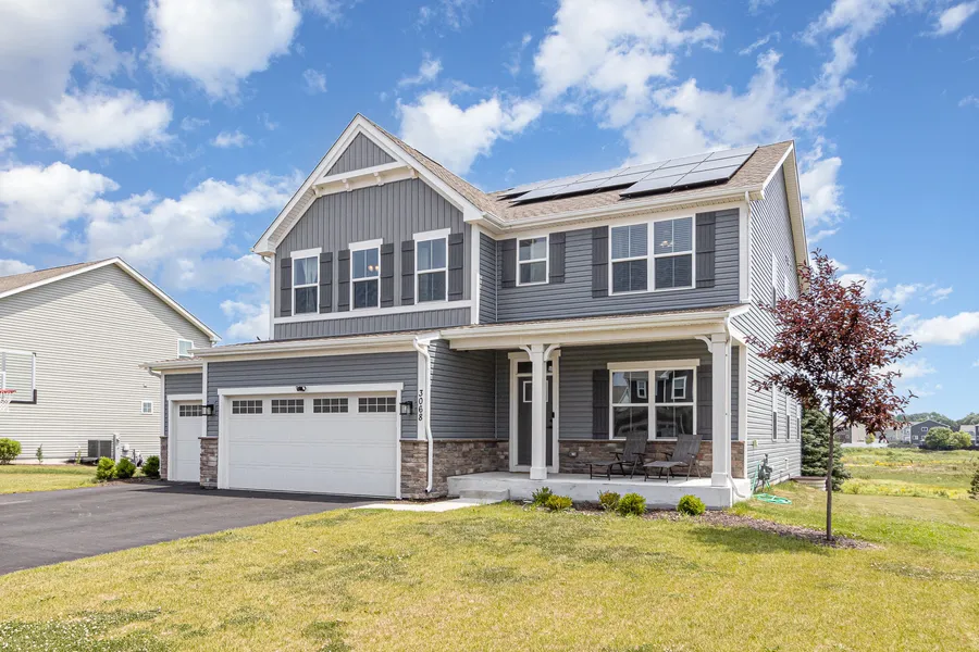 Better than new and no SSA! Why wait for new construction, when your dream home is ready? This beautiful four bedroom, 2 1/2 bath home is only 2 years new! Lovely front porch to enjoy the sunset. It has all the modern finishes discerning buyers are looking for. The open concept allows for perfect entertaining with friends and family! So much natural light with all the windows! Well appointed kitchen with massive island, quartz countertops, white cabinetry, SS appliances, and walk-in pantry! Convenient home office on main level. High-end vinyl plank flooring for easy clean-up in kitchen, dining room, hallways, and 1/2 bath. Upstairs you will find your primary suite with well appointed master bath and two walk-in closets. Three additional bedrooms with a shared bath. Convenient 2nd floor laundry. Lookout basement is unfinished but laid out nicely to finish for even more living space, and it is also plumbed for a full bath. My clients electric bill was just $19.58 and the lease is only $60.50/mo. for the solar panels, so there is a huge savings each month. Grande Reserve community amenities include pool, clubhouse, walking trails, and grade school. This home backs up to an open space. Yorkville is a great place to call home with so many restaurants, shopping, golf, water park, and other entertainment. Fox river is nearby. Quick close possible!