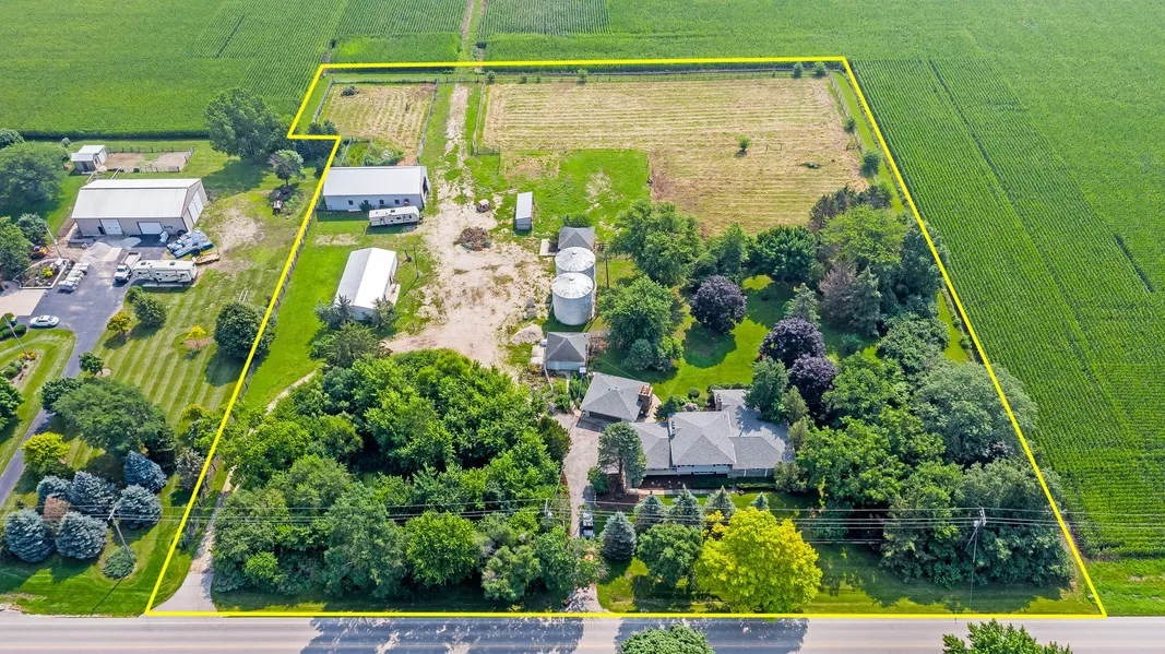 5 ACRE FARMETTE; HOUSE, MULTIPLE OUTBUILDINGS & POND ON NATURAL GAS Tri-level with sub-basement; 4 BR / 2.5 BA. Over 3,000 finished square feet; 2,385 are above grade. Kitchen with island is open to the addition in the back of the house. Hardwood Floors in the large living room. Potential Related Living / In-Law suite as the original garage was built-out as 4th bathroom with 1/2 bath, is directly connected to lower-level family room and has its own entrance. Newer 2 Car Detached Garage. Outdoor brick fireplace, gazebo & patio in back yard. Outbuildings include: 24x66 Cement Block Machine Shed; 28x56 Frame Garage; 3-sided Run-in Shed; 2 Other Detached Garages (22x22 & 22x20 - used for 4 horse stalls); 2 Metal Grain Bins (22 ft in diameter by 20 ft high); Fenced Pastures. Multiple PINS - All Zoned A-1; Circular drive is perfect for trucks and trailers or Ag related businesses that would be allowed on this parcel; has good visibility on Ridge Road. Recent Updates: Roof, Electrical upgrade $14,000, Furnace $4,000, Windows, Doors, Carpet & Fresh paint throughout plus landscaping.