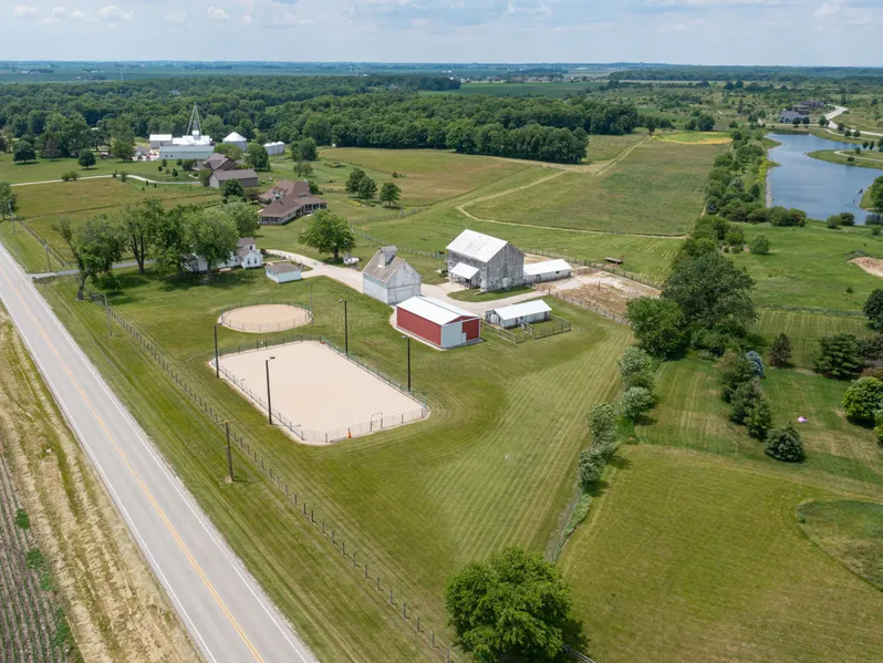 31.7 ACRE FARMETTE WITH 7 OUTBUILDINGS - VALUE IS IN THE LAND! BUILD YOUR DREAM HOME on this beautiful land that offers a combination of timber, pasture and hay field. Beautiful views of the countryside to the east and west at one of the highest levels of elevation in the county. Topography allows for a walk-out basement. Trails are cut in the timber for walking or riding. The entire property is fenced. OUTBUILDINGS INCLUDE A VINTAGE WOOD BARN WITH LEAN TO, MACHINE SHED, CHICKEN COOP, CORN CRIB, WELL HOUSE AND DETACHED GARAGE. If you love TIMBER FRAME HOMES...imagine the possibilities with...#1 HORSE BARN is 38x50 and is a beautiful TIMBER FRAME. It features wood flooring on both levels, 1 Stall (room for more if you reconfigure the space), Tack Room, Full Bath and Office. The 2nd Floor / Hay Mow is neat and clean - use for it's purpose or for entertaining. The exterior is wood sided (ju...