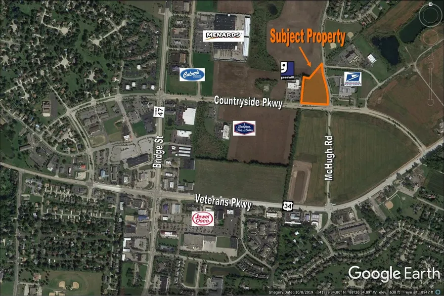 PRIME LOCATION ~ CORNER LOT!!! 4.22 Acres of Commercial Land Immediately Available! Northwest Corner of Countryside Pkwy & McHugh Rd @ McHugh Rd. This corner lot is zoned B-3 at the very heavily traveled corner of McHugh Road & Countryside Pkwy in Yorkville. Yorkville is experiencing rapid growth and this location is well situated across from the new Yorkville Post Office. If you are looking to expand into Yorkville or invest in one of the fastest-growing communities in Kendall County, this property is for you! 4.22 Acres adjacent to many national brands, Menards, Goodwill, Dunkin Donuts, Hampton Inn, Holiday Inn Express, Belle Tire, Culvers and many many more!