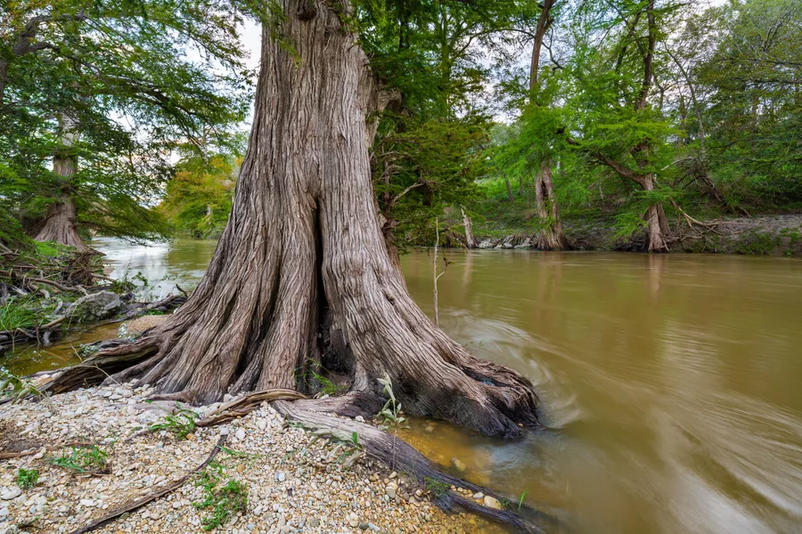 The terrain is gently undulating with some deep canyons. The elevations range from 1,120 feet to 1,370 feet. The ranch is predominately rolling live oak savannahs with large live oak trees throughout and some pecan, hackberry and elm trees in places. The cypress trees that line the banks of the Guadalupe River are unbelievable.