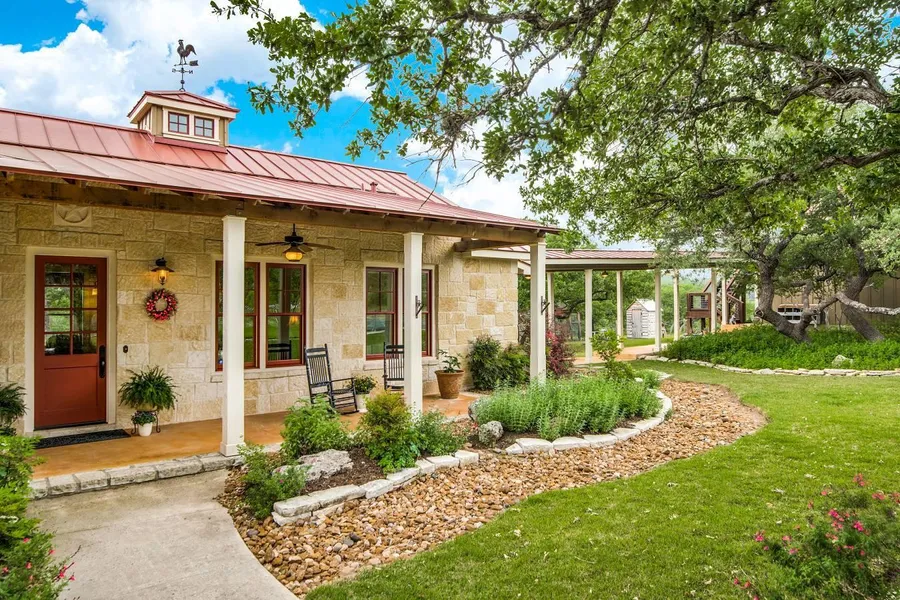 COMMENTS: Fresh Hill Country Farmhouse w/views located on 13+private/gated acres. Built by Authentic Custom Homes w/high quality finishes: Viking appl., farmhouse sink, reclaimed wood floors/beams; ceiling details; stained glass,etc. Loads of style, raise chickens, watch Black Buck Deer, enjoy low Wildlife exempt taxes; Exercise area+Sauna; Study,Gamerm, Tree house; Explore wet weather creek in your own ravine; Covered Breezeway leads to Garage/Carport via Mudroom. A re-imagined classic with light filled interiors! Boerne ISD!