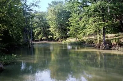 A tranquil lake of water is backed up for about 1,000 feet by the dam, and another is created by a dam downstream from the property which backs up onto the site. Thus, most of the creek water on this ranch is deeper floatable, fishable, rock-skippable and what is not flows crystal clear over a solid rock bottom. The shoreline shares main billing, as most of it consists of gentle berms dotted with giant cypress and pecan trees. The bottom is simply marvelous, and begs one to relax, slow down, and drift away into natures mystique as th...