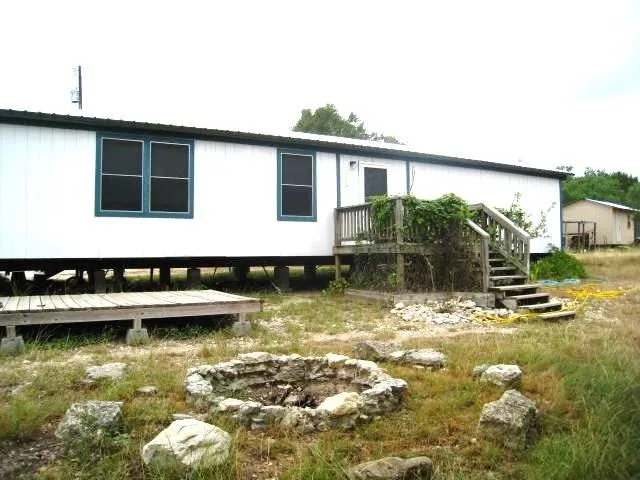 Peaceful Texas Hill Country living complete with privacy and seclusion. Tired of the Big City? Over 9 acres with single wide nestled among beautiful, mature trees. Great views, front and back porch decks and storage shed. Playscape to convey. Wet weather creek and multiple building sites.