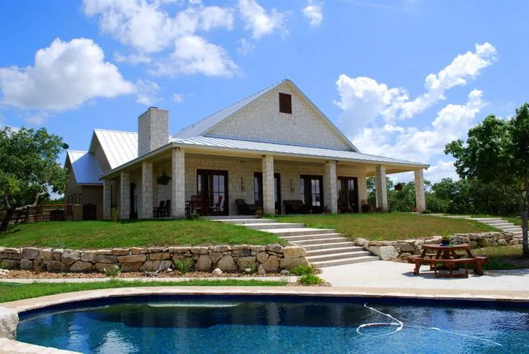 This property is a rare combination of long range vistas, good soils and convenience. Owners can live in the custom built 3812 sqft main home with expansive and wide open living spaces while the in-laws, ranch hand or renters stay in the 1400 sqft guest home attached to the 4 stall barn. Behind the home you will find sprawling porches that overlook the swimming pool, cabana, sports court, roping arena and Guadalupe River Valley. Bring your horses and roping steers. This one is ready to go.