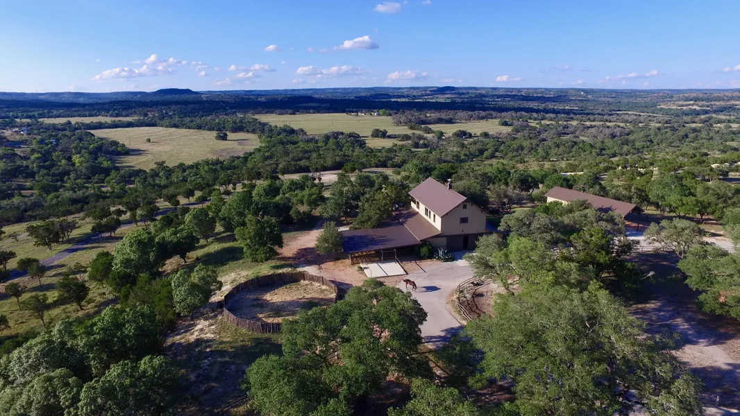 This Gorgeous Hill country ranch is a Horse and Sportsmans paradise. The property is beautifully situated on a flat topped hill and has stunning views of the surrounding valleys. It is completely high fenced and full of Axis Deer and Trophy Whitetailed Deer. Grand entrance has electric gate with keypad and paved road all the way to the house. Everything on this ranch is top notch and immaculate.